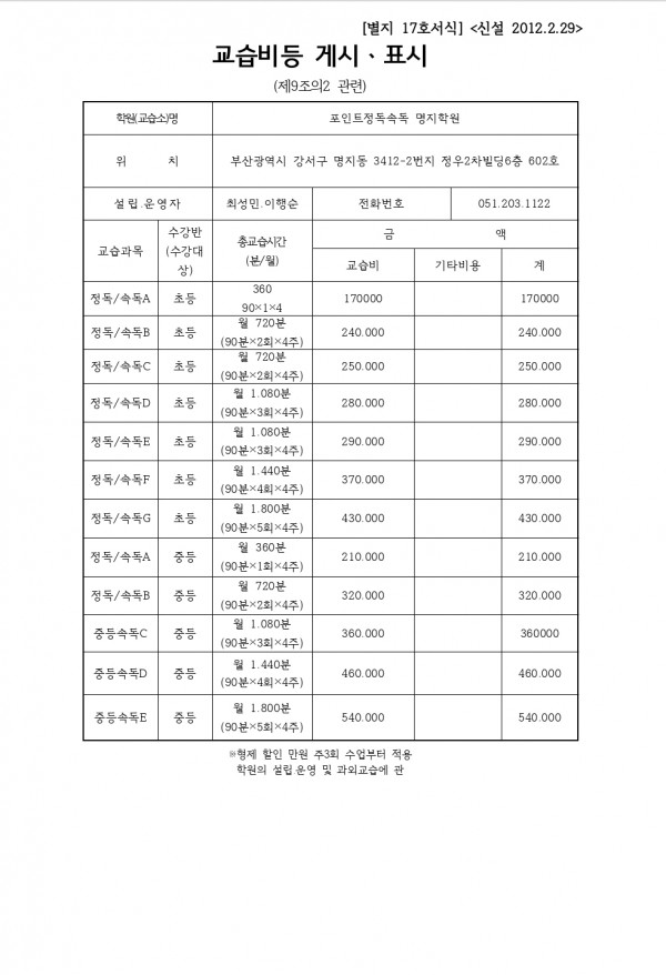 포인트정독속독 명지학원 공개정보안내 (수강료, 학원비반환게시표) 페이지 정보 작성자 최고관리자 댓글 0건 조회 353회 작성일 25-12-31 22:13 목록 본문 홈페이지 관리자 학원 명칭 : 포인트정독속독 명지학원등록(신고)번호 : 제 2425 호